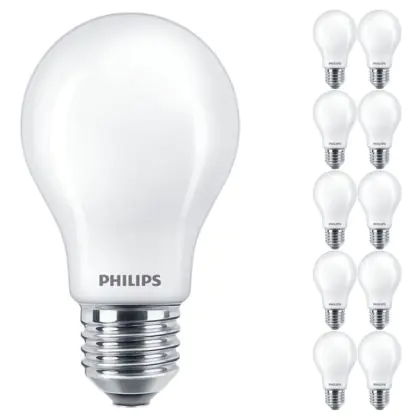 La Confezione Multipack 10x Philips MASTER Value LED Bulbo E27 Pera Ghiaccio 3.4W 470lm - 927 Bianco Molto Caldo | Miglior resa cromatica - Dimmerabile - Sostitutiva 40W è la perfetta sostituzione per la tua lampada convenzionale 40W con attacco E27 grazie alla sua tecnologia LED. Passare a LED ti offrirà tanti vantaggi!