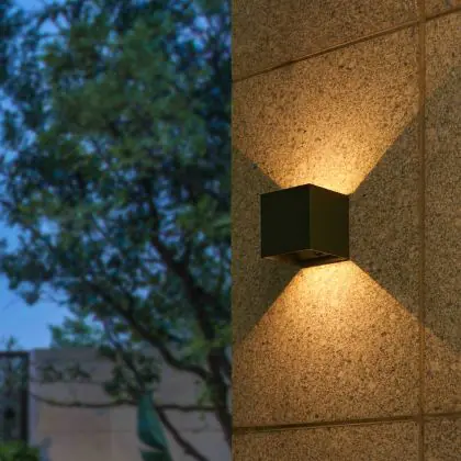 - Emissione luminosa: Luce bianca calda (3000K) con fascio doppio verso l’alto e verso il basso per un effetto architettonico.