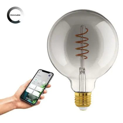 La Eglo Connect.Z Smart LED Globe E27 Filamento Smokey 4W 150lm - 820 Bianco Molto Caldo | Dimmerabile - Sostitutiva 15W è la perfetta sostituzione per la tua lampada convenzionale 15W con attacco E27 grazie alla sua tecnologia LED. Passare a LED ti offrirà tanti vantaggi!