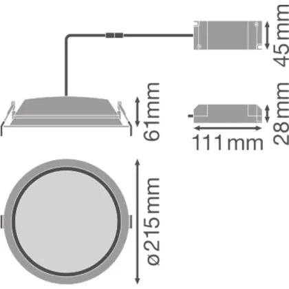 Descrizione Ledvance Downlight LED DN200 Bianca 35W 3150lm - 865 Luce del Giorno | 215m - Ritaglio 200mm - IP44