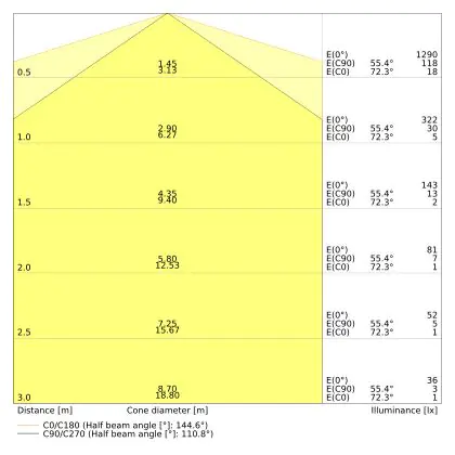 Il numero di lumen (lm) è la resa luminosa di una fonte di luce. Più alto è il numero di lumen, più luce emette la fonte luminosa. Il wattaggio e il numero di lumen non sono collegati tra loro. Una lampada a LED con un basso wattaggio può avere un numero di lumen più alto di una lampada convenzionale con un alto wattaggio.