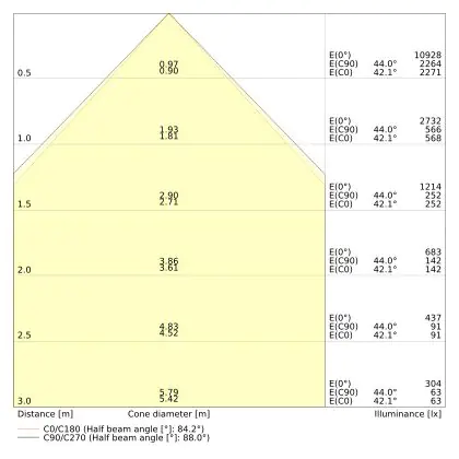 Il codice colore è una combinazione di resa cromatica (CRI) e colore della luce (Kelvin). La prima cifra indica la resa cromatica (1 = resa del colore molto bassa, 9 = massima resa del colore), mentre la seconda e la terza si riferiscono al colore della luce. Esempio: il codice colore 830 indica una buona resa cromatica (8) e luce bianca calda (3000K). |