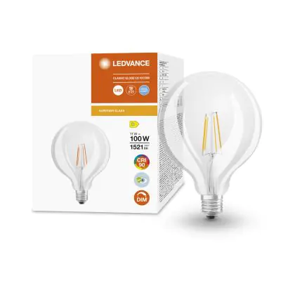 La Ledvance Superior Classic LED E27 Globe Filamento Chiara 11W 1521lm - 940 Bianco Freddo | Miglior resa cromatica è la perfetta sostituzione per la tua lampada convenzionale 100W con attacco E27 grazie alla sua tecnologia LED. Passare a LED ti offrirà tanti vantaggi!