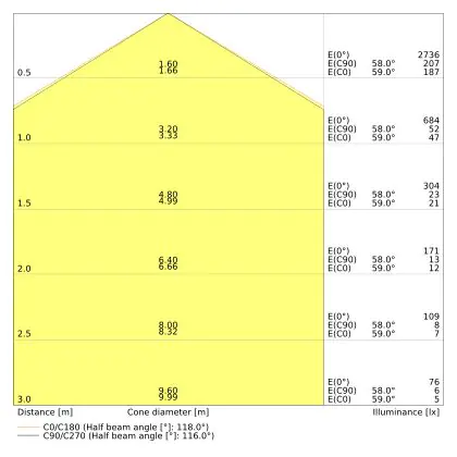 Il codice colore è una combinazione di resa cromatica (CRI) e colore della luce (Kelvin). La prima cifra indica la resa cromatica (1 = resa del colore molto bassa, 9 = massima resa del colore), mentre la seconda e la terza si riferiscono al colore della luce. Esempio: il codice colore 830 indica una buona resa cromatica (8) e luce bianca calda (3000K). |