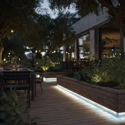 Questa fonte di luce può sempre essere utilizzata per l'illuminazione d'accento. Per usarla invece come illuminazione generale bisogna considerare l’emissione luminosa e l’apertura del fascio di luce. Questa striscia LED è lunga 5000 mm e ha una potenza luminosa di 410 Lumen. Dividendo il numero di Lumen per la lunghezza della striscia LED troverai la potenza luminosa per metro. Le strisce LED hanno generalmente un fascio di luce ad ampio angolo, che non fa eccezione per questo articolo: °. Clicca qui per scoprire quanti lumen servono in ogni stanza.