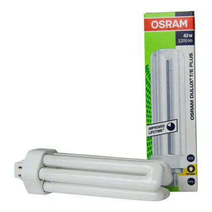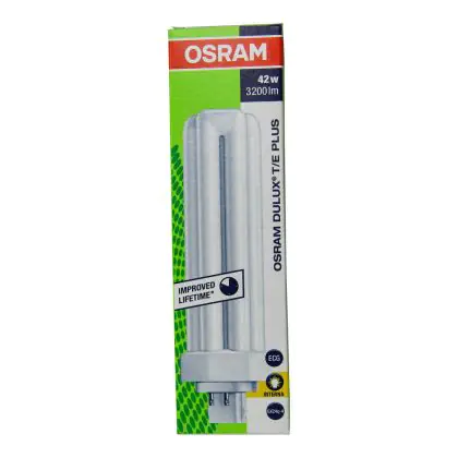 Le Osram Dulux T/E 42W 827 PLUS G24q-4 Lumilux Interna sono lampade fluorescenti compatte che presentano una potenza pari a 42W. Le stesse sono poi dotate di attacco a 4 pin (perni). I vantaggi di tali lampade sono diversi: oltre alla lunga vita é importante ricordare l'eccellente flusso luminoso di 3200 lumen.