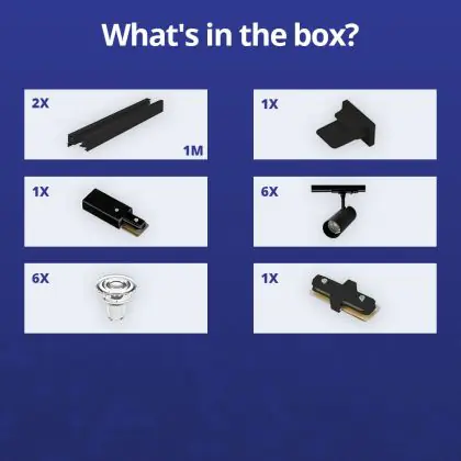 | Nome del fabbricante | Complete Straight 2-meter 1-Phase Track Set Black incl. 6x Spot fixture + GU10 2700K 3W Dim – 2x 1 M | |