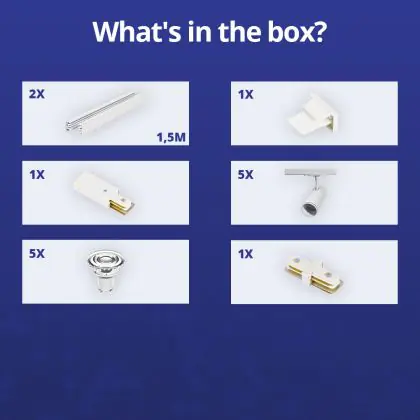 Descrizione Set completo 1-Fase Rail 3 Metro Bianca | incl. 5x Faretti + GU10 2700K 3W Dimmerabile + Tappo Di Chiusura, Connettore di Alimentazione e I-Connettore